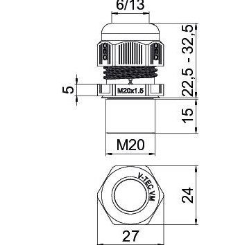Läbiviik+kontramutter LM20 IP68 6-13mm, pikk keere OBO