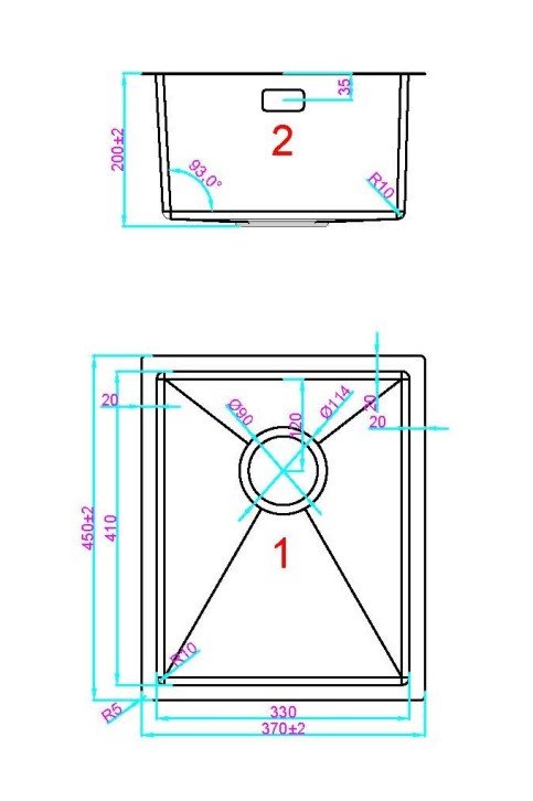 Valamu RV CUBE II 370*450 satiin